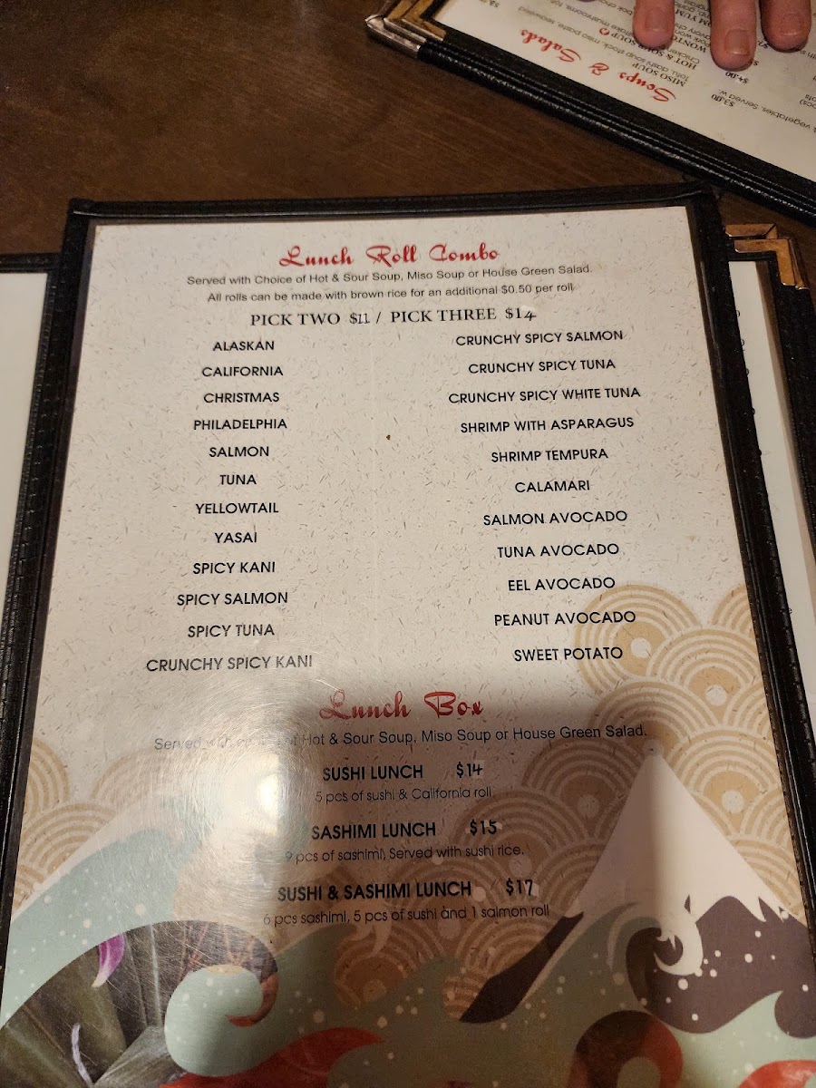 3 pcs. each of tuna, yellowtail, salmon & 1 salmon avocado roll